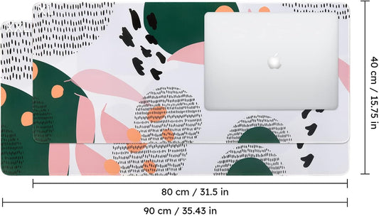 RGB Gaming Mouse Pad 5-15W, Wireless Charging LED Mousepad 31.9X12.3 Inch, XL Large Non-Slip Rubber Base Computer Keyboard Mat for Gaming, Work, Home, Office (Geometric Leaves)
